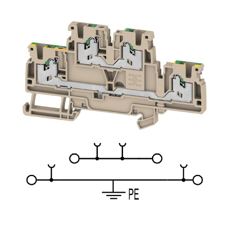 - 鼠籠式端子台, 直通接點:2, 接地接點:2 , 深褐色
