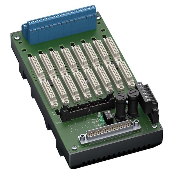 | 接線板設有 8 個隔離器插槽。任何隔離器可插入任意插槽,從而允許在同一接線板上混合使用不同類型的 I/O。接線板配備用於現場側連接的固定螺絲端子、用於控制側連接的 37 針 Sub-D 連接器以及用於連接獨立 HART 通訊板的 HART 線纜組件。系統可透過冗餘電源端子上的無電壓觸點取得隔離器電源電壓缺失的資訊。如果隔離器支援此功能,則現場側的接線錯誤將透過相同繼電器觸點進行報告。接線板標配堅固的塑膠外殼。這種設計使其能夠根據 EN 60715 標準快速可靠地安裝在機櫃內的 35 mm DIN 安裝導軌上。 | ||