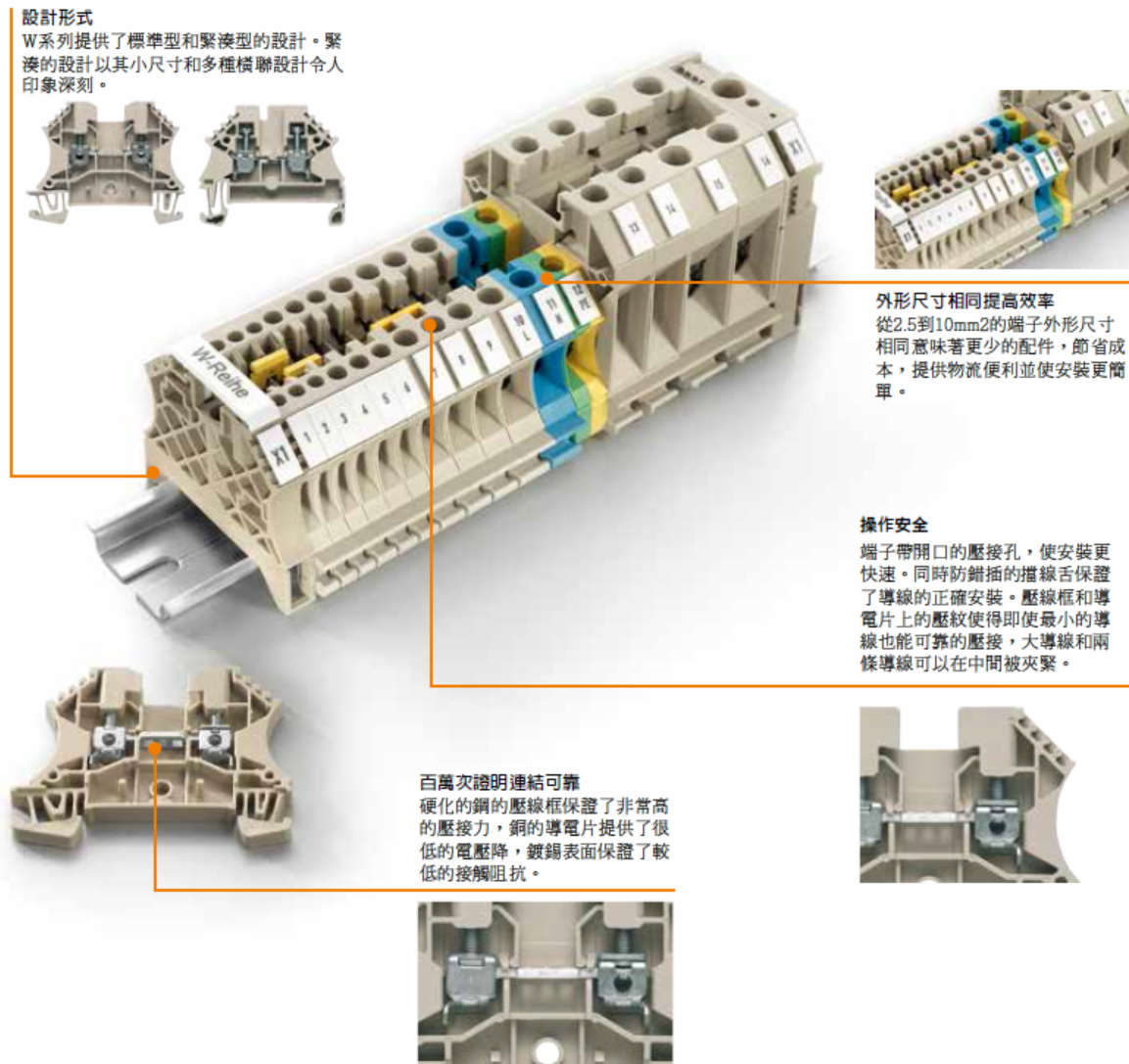 | W系列端子台 - 壓線框接線端子和螺絲連接技術 | |||