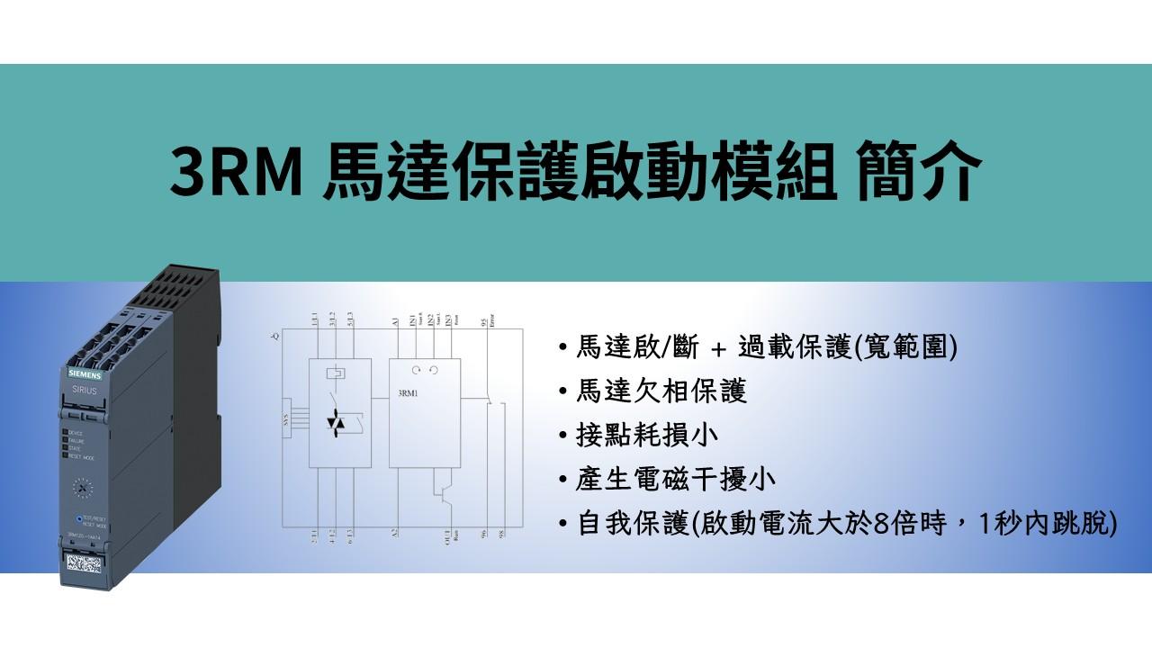 - 3RM10(直接啟動器)取代電磁開關MS(接觸器+積熱電驛),主要功能為馬達啟動/停止及過載保護,另外3RM12(可逆啟動器)可正轉/反轉馬達可節省不少空間及配線
